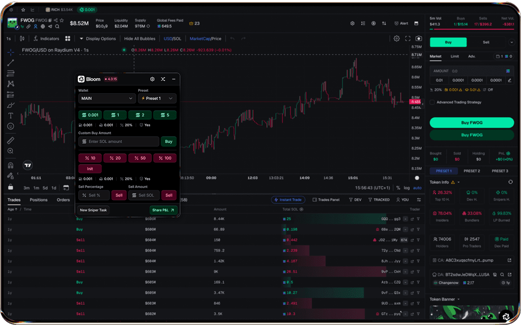 Yes. Bloom is a Telegram-based trading bot, complemented by a Chrome Extension that integrates directly with multiple terminals and trading platforms.