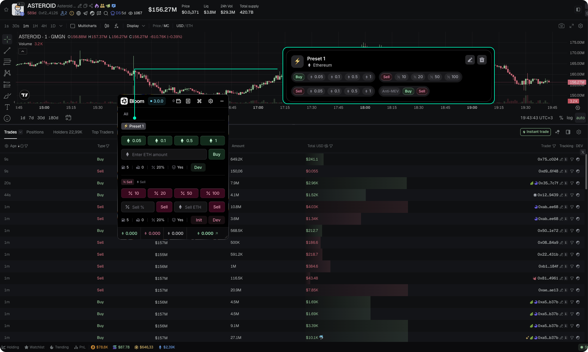 If you already run a preferred terminal, chart tool, or scanning platform, Bloom Extension layers on top. You keep your workflow, your platform, your charts. Bloom handles the execution. The extension works on every Ethereum pair the bot supports. Find a token on your platform, trigger the trade from the Bloom panel, and the swap executes with Bloom's gas routing and MEV protection.