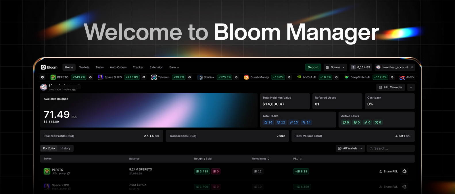 - –Wallet Groups: Configure in Settings, trade across multiple wallets from one view. Orderable with multi select.
